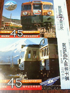 富士急線国鉄直通列車乗り入れ45周年記念乗車券