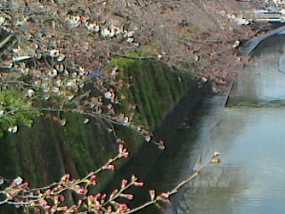 桜の木は日当たりが良いのに咲いていなく妙見堂の階段下は余り日が当たらないが満開。呑川の桜も咲いているのと蕾とある。