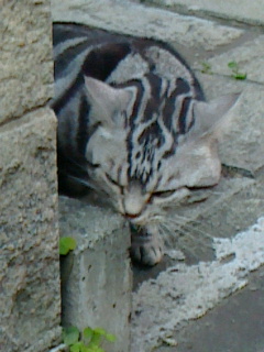 今朝も早朝4時には枕元に来て餌をねだる。私は二度寝で6時に猫と散歩。散歩と言っても家から数軒までで車が来れば慌てて逃げる。臆病と言うか警戒心が強い。