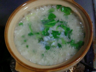 早速いただく、冷蔵庫の残りのお節の処理で取り出すとその奥に何と七草のパックがあった。そして今日のお昼も七草粥になりました。