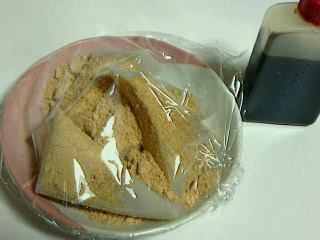甲府のお土産定番。牛脂にきな粉と黒蜜をかけて戴くが美味しい。
