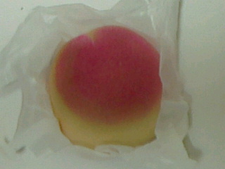 信玄桃は同じ会社の製品で上から見るとミニ桃ですが中身は白餡の入った饅頭。余り桃を食べている感覚は無いが色も良いし美味しく小箱のパッケージが良い。