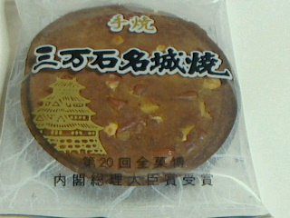 小麦のせんべいで南京豆が入った南部せんべい風、せんべいの上にはお城の型印が押されて焼かれています。硬く食べ心地と触感が良い。しかし味よりお城に興味が行ってしまう自分がいます。