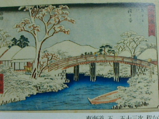 東海道物といえば広重と言われる位沢山の揃い物があります。一番は保永堂版でしょうが隷書もそれなりに面白い。