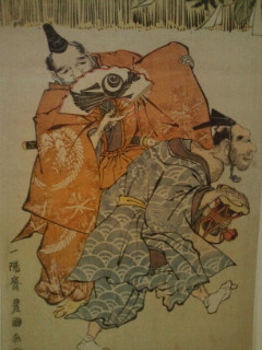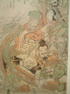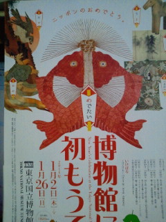 1月2日から26日まで毎年の「博物館で初もうで」というタイトルで開催されています。各コーナーは正月らしい作品でいっぱいです。私の目当ては毎月の入れ替えの「浮世絵と衣装」の本館10室です。今月は正月らしい浮世絵が30数点飾られています。
