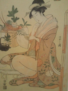 左が羽川沖信の「寿之字内江戸名所」タイトル通りの寿の字の中に江戸名所が描かれている古い紅絵、右は歌麿の美人画「遊君子の日小松引之図」、小松引は正月最初の子日(ねのひ)に小松を引いて遊ぶ平安時代から習わしのようです。