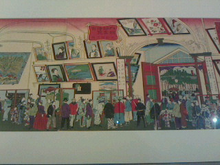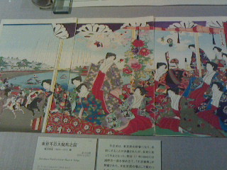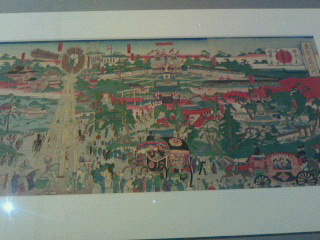 幕末から明治維新に撮影された写真や江戸城本丸建築金物絵本、松の廊下障壁画の下絵、上野公園での河鍋暁斎筆の内国勧業博覧会之図、三代広重の内国博覧会会場図、周延の東京不忍大競馬之図などの浮世絵も展示されています。