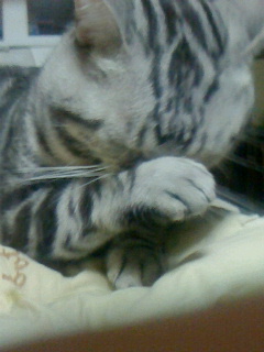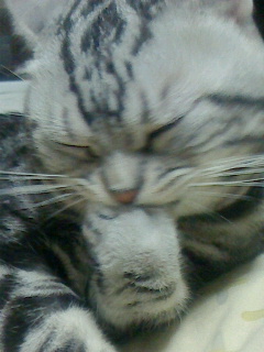 私の布団には未だかって入らず、温かい時には私の布団の足元に遠慮しいしい私に体の一部に自分の頭を乗せている。猫の身体は重いので自分の身体の自由もきかない。