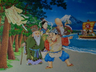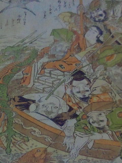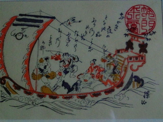 江戸時代庶民は初夢を見るのに枕の下に宝船の絵を入れて良い夢が見られるように願って宝船や七福神などめでたいものを買い求めました。絵には回文「長き夜の疾うの眠りの皆目覚め波乗り船の音の佳き哉」が書かれています。