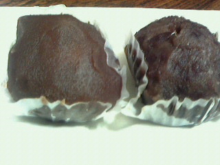 こし餡、粒餡と2種類、ちいさなおはぎで何処のお店のものか解りませんが娘のお土産。なめらかなこしあんが個人的には好きです。