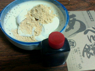 赤門餅は此れは初めて戴いたが桔梗屋信玄餅と同じ米粉に中は4つに分かれきな粉がかかっているが黒蜜は餅に混ぜ込んである。とても甘いお菓子です。