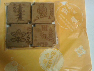 瓦せんべいの焼き印も沢山あり此れも楽しみです。我が家では瓦せんべいのほかに硬いげんこつせんべいも購入。