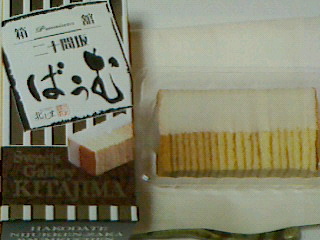 函館の名所というとこの坂が出ます。「二十間坂」の石畳をイメージした箱型のバームクーヘン。北島製パンは函館手前の木古内町の商品。今回はママリンのお友達のお土産。