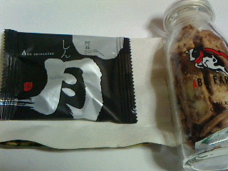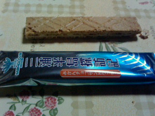 しん月は薄い饅頭にチョコレートが入っているお菓子。まぁ応援の商品で納得しよう。