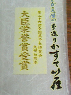 宣伝では第24回全国菓子大博覧会九州In熊本大臣栄誉賞受賞と大きく書かれている。普段はカステラは福砂屋のカステラを購入するのだが今はデパートまで出かけられず近隣のスーパーでおやつを購入している。