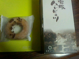 普通のドーナッツ、オールドファションというのか周りにシナモンシュガーがまぶしてある。宣伝文句にはサックリした食感と素朴な甘味が特徴の宝塚ホテルが監修。