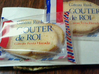 フランスパンにバターの風味と砂糖がかかりサクサクとしたラスク。昔はこのラスクが一番だったが今は色々なお店で商品化している。懐かしい。ご近所からの戴き物。
