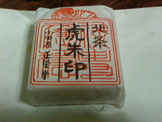 寅朱印は北条氏の公文書に使用した印を表した最中、中には求肥が入っています。