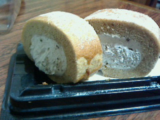 カカオ入りのホイップクリームが溢れんばかりにロールされていて柔らかいので手では潰れて出てしまう。美味しいのですが今の私には甘すぎてカロリーも取り過ぎかも。