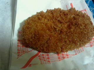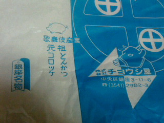 創業昭和2年だそうで、包み紙には元祖コロッケ、とんかつと印刷されている。とんかつは同じ銀座の煉瓦亭のような気がするが、煉瓦亭は豚肉カツレツです。当時はカツレツは牛が一般的。ハムカツ、コロッケパンは300円。