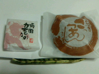 両国にある創業80年の和菓子屋、どら焼きは「ごっつあんです」最中は「両国力士最中」という商品名。