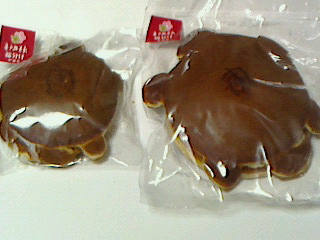 亀戸天神への途中にある和菓子屋、このお菓子は亀戸梅屋敷で購入。皮が亀の形になっている変わったどら焼き。皮が旨い、餡はつぶし餡で個人的にはもう少し甘い方が好きです。特別大きい亀のどら焼き、普通のどら焼き、普通と言ってもかなり大きい。