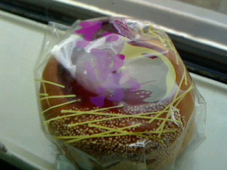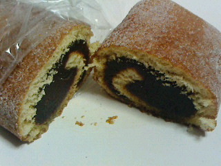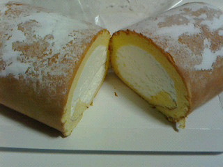 ロールケーキ見たいな大きさで周りにはグラニュー糖が掛かり、買って大丈夫かと躊躇しましたが大は小を兼ねると購入。やはりその心配はあたり娘が少し食べてくれましたが残りは無理して独りで2日掛かって戴く。