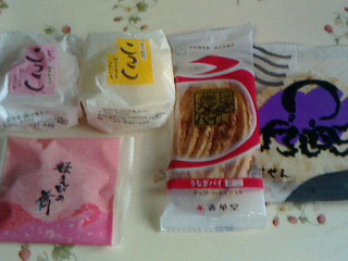 三島駅構内で購入の家へのお土産。こっこはママリン、うなぎパイは娘、桜海老の舞は家族三人の好物でエビの殻をつぶした粉が入った香ばしいせんべいで伊豆では良くお土産にしていました懐かしいお菓子です。この他にも明石で鯛せんべい、静岡でウナギの骨せんべいなども購入。関西に行ったのか静岡へ行ったのか解らないお土産でした。