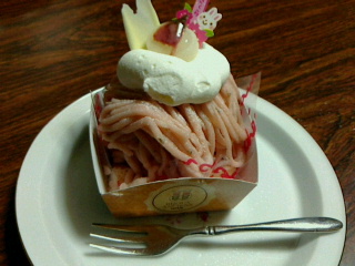 梅屋敷東邦医大通りにあるケーキ屋さん。小さなお店ですが何故か多くの職人さんがいるお店で今回は季節のモンブランという事で戴きました。
