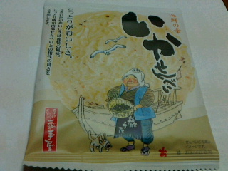 この南部せんべいはさきいかを細かくしてせんべいの表面に付けていて風味とせんべいの感触がとても良く目にすると買ったしまう個人的に好物のお菓子です。