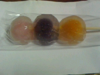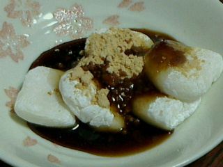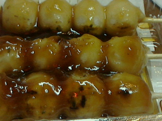 大森のアーケド商店街を出た広場前にある和菓子屋かどやの焼団子。蜜もとても美味しい。難点は買ってすぐ戴かないと団子が硬くなる。