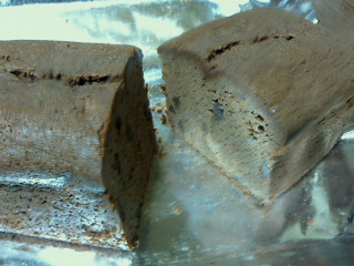 盛岡の焼菓子、リンゴの焼き菓子でなくバームクーヘンの欠片。上には沖縄の黒砂糖が掛けられさくっとした触感と中はしっとりした感触。普段食べるバームクーヘンとは違う。盛岡からのお土産として戴いた物で初めて戴いた。