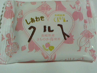 長崎のお土産でママリンが戴いて来たもの。時期的に長崎のいちご、さちのかが薄い瓦せんべいみたいな間にクリームがサンドしている。何枚でも戴ける。この手のお菓子は全国にあるが大体何処も美味しい。