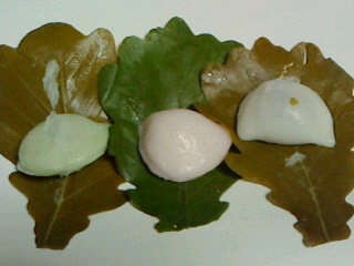 左から粒餡、味噌、こしあんと3色の柏餅。葉の匂いと餡の甘さがどれもマッチしている。この時期はやはり柏餅を戴かなければ始まらない。この所色々な柏餅を戴いている。
