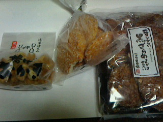 この所買い込んでいるのがざらめせんべい。何方かと言うと硬いので醤油せんべいより私は好きです。浅草と深川で購入。