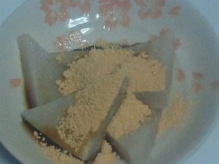 池上名物久寿餅、池上に花見に行って食後のデザートでお店で戴く。大体がお土産で買って家で食べていました。