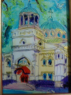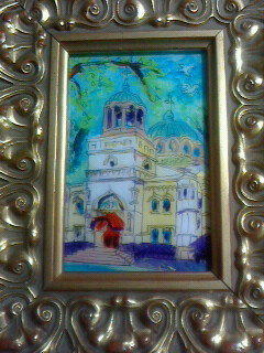 名前はともかく線描画的で挿絵にもなるようなニコライ堂の風景です。飾っても邪魔にならない風景画で大きさも我が家には丁度いい。ガラス絵も良いなぁと云った感じで購入したかも。