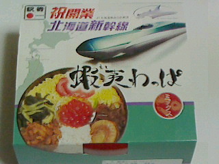 蝦夷わっぱという旭川駅立売株式会社のウニ、いくら、ホタテ、カニなどが入った駅弁。西明石の淡路屋のひっぱりだこ飯を二人でシェアして戴いた。旨し。かみさんに感謝。昔買ったひっぱりだこは現在歯磨き入れに使っている。