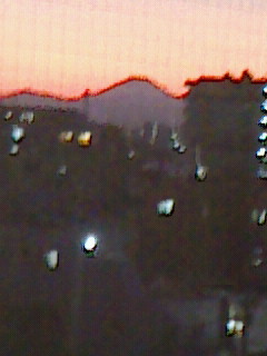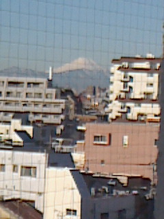今回は5号館は1,2,3、号館の道路向かい側で各館の間から日の出が見え晴れていると富士山がくっきり真白き雪をかぶっています。また夕方には富士山の夕焼けが綺麗です。残念ながら私のガラ系の携帯では相変わらずのボケピンですが。