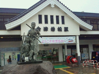 駅前の英国風のタクシーハンサムウーマンが運転していました。途中の野口英世像、有名な和蝋燭をお土産に。