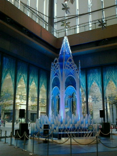 日本郵船ビル横にはオランダ船のレプリカ、館内にはクリスマスの飾りつけ「アナと雪の女王」をモチーフに。