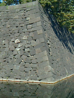 桜田門と警視庁、警視庁は上から見るとAの形。お濠と石垣、ここら辺は高い。
