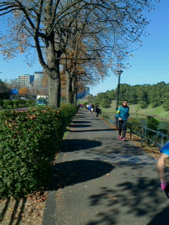 この辺に来るとお濠は土塁、緑が綺麗。相変わらず頑張る市民ランナーが多い。