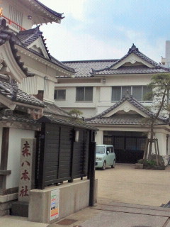 いい加減に歩いていると突然お城が出てきました。森八という和菓子屋さんの店舗でしっかりした門もあり裏の本社も破風がついた御殿風。