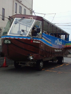 すみだ水族館の前で今度は変なバスが停車中。これは水陸両用で陸上でバスで走り川には船になる観光車両バス「スカイダック」だそうです。まだ乗れそうでしたが今回は資料館がメインで諦める。