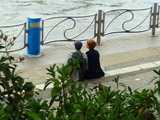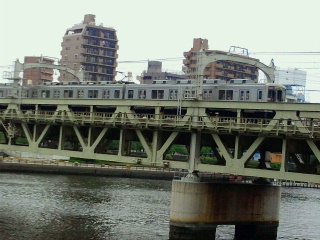 横道にそれたので本来の目的地「すみだ郷土文化資料館」で浮世絵を見せていただき、帰りは隅田川沿いに葉桜の下を散策。川沿いにはアベックが抱き合ったり、多くの日曜画家がスケッチしています。