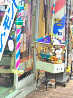 メイン通りに出ると床屋さんもスカイツリーの装飾、隣のお店は鏡を立ててスカイツリーが全部入るようにしていたりしています。