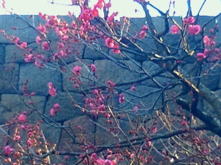 皇居内はいつ来ても落ち葉がなくきれいに掃除が行き届いています。少し行くと梅の木が花開いています。ただ全部の木が咲いているのではなく一部の木ですがもう春はすぐそこに来ているのを感じます。