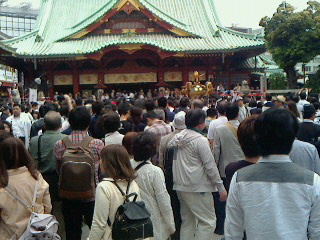 2年に一度の天下祭、早朝から御輿や山車、武者行列、仮装行列は日本橋、秋葉原などを練り歩いているようです。御輿は今日は各町会を練り歩き108町会約200基の神輿が明日は神社に戻るようです。各町会の山車は写真右のような大きなものが練り歩くようです。左はそば・まつやがある連雀町の鍾馗様。