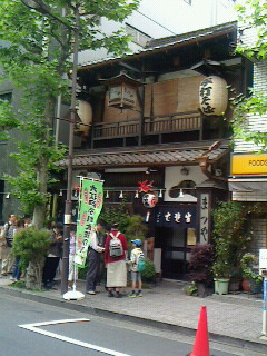 この地域は戦災にも合わず昔のたたずまいの雰囲気がある一体です。藪は最近火事にあい建て直したばかり沢山の人が並んでいます。裏側のまつやへ向かう。此処も少し並んでいましたがすぐ入れ、ビール日本酒、締めにもりを戴く。